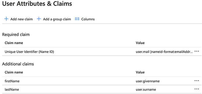- Configure the profile claims and Group Attribute Statements as shown in the following: