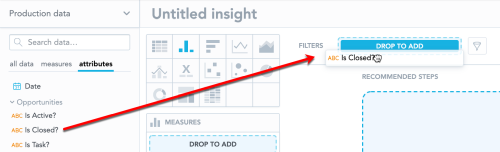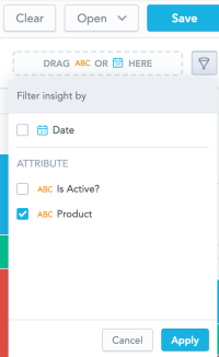 To filter your insight, you must add attributes or date to the filter bar. You have two options: