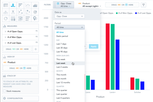 For measures, specify the filter. For details, see Filtering Insights by Measure Values.