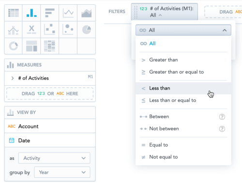 Select any measure from the insight in the FILTERS dropdown menu. Then refine your data.