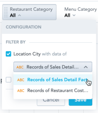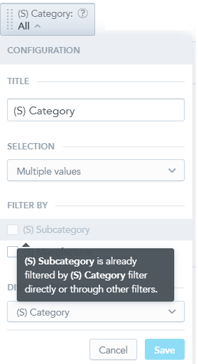 Now if you narrow the selection in the parent filter, the dependent filters show only items corresponding with the parent filter selection.