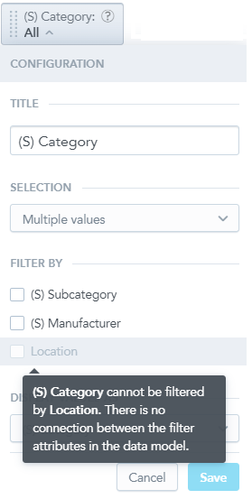If you have multiple attribute filters with many items, you can configure the filters to create a hierarchy. Filters then show only the items that correspond with the selections in their parent filters.