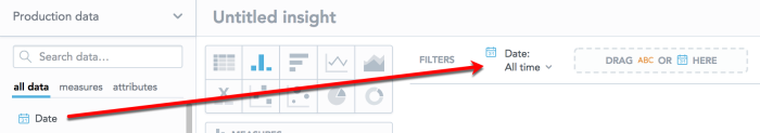 In Data Explorer, you can use the date filter for time over time comparison to analyze your data without using complex MAQL syntax.