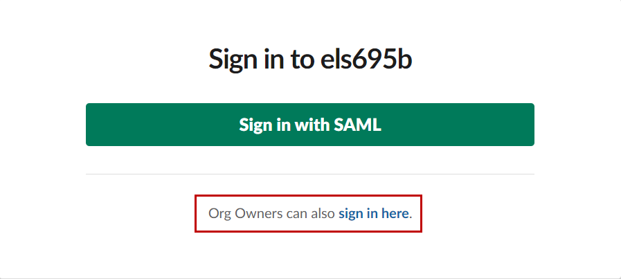 - Enter your Org Owner credentials and click Sign in. A Slack window opens that states